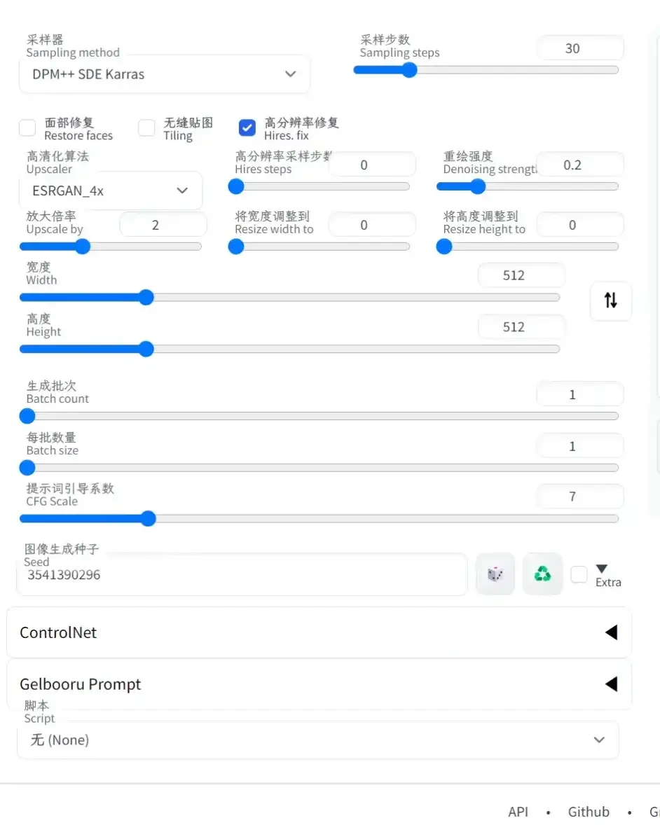 面部修复这个基本可以直接忽略;无缝贴图就是生成一个瓷砖;高分修复上面说过,这个很吃显存。