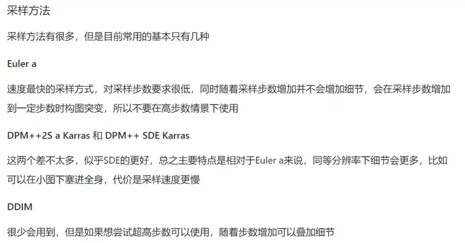 生成图片的迭代步数,每多一次迭代就会让 AI更靠近prompt。更高的步数需要花费更多的计算时间,步数越大,图像细节越多,但是和采样器相关联,详见上图。